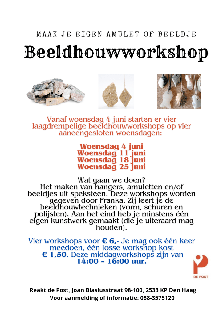 Vanaf september 2025 zijn de keramiek workshops niet meer op donderdag maar op woensdagmiddag van 14:00 uur tot 16:00 uur.